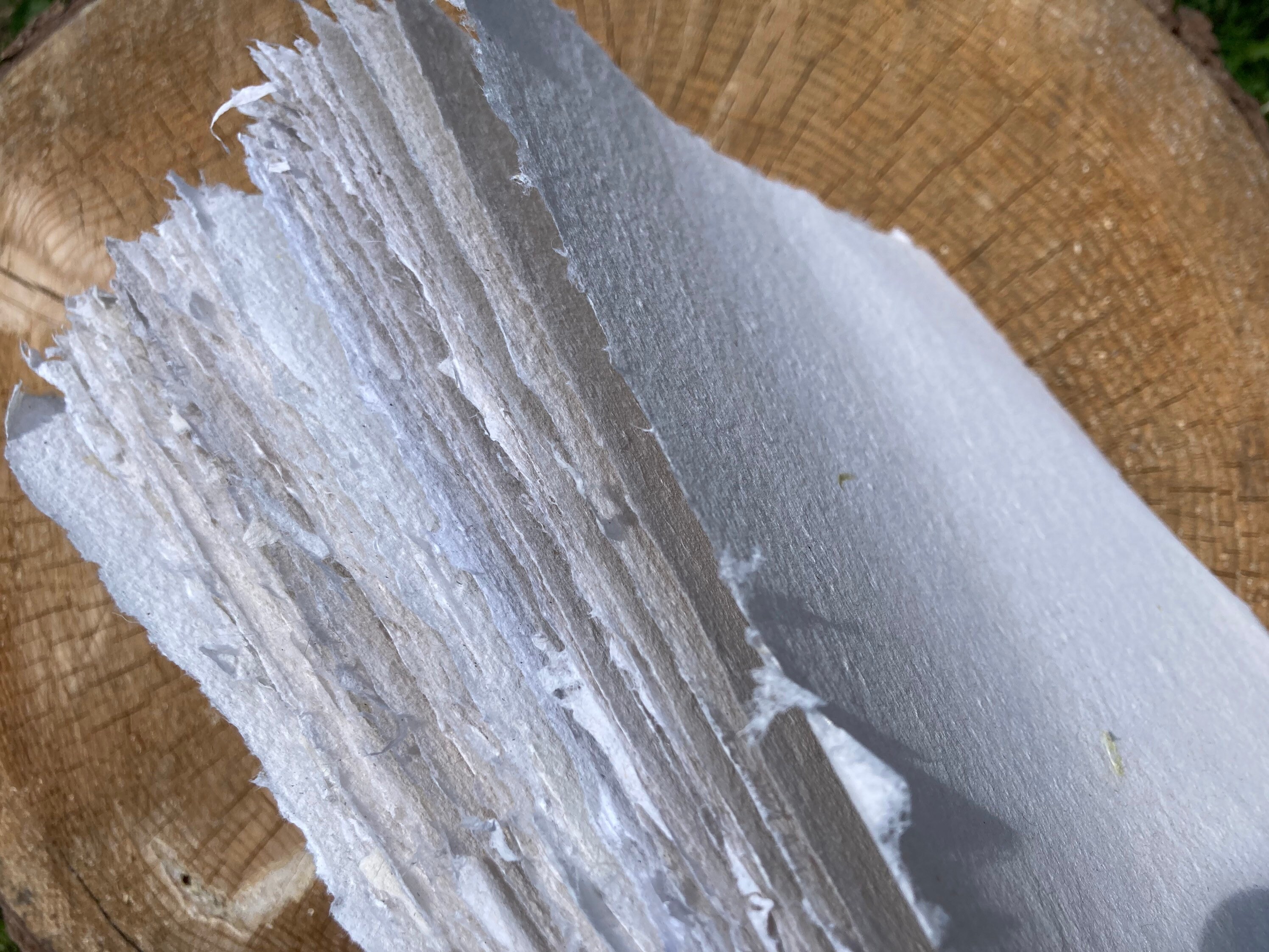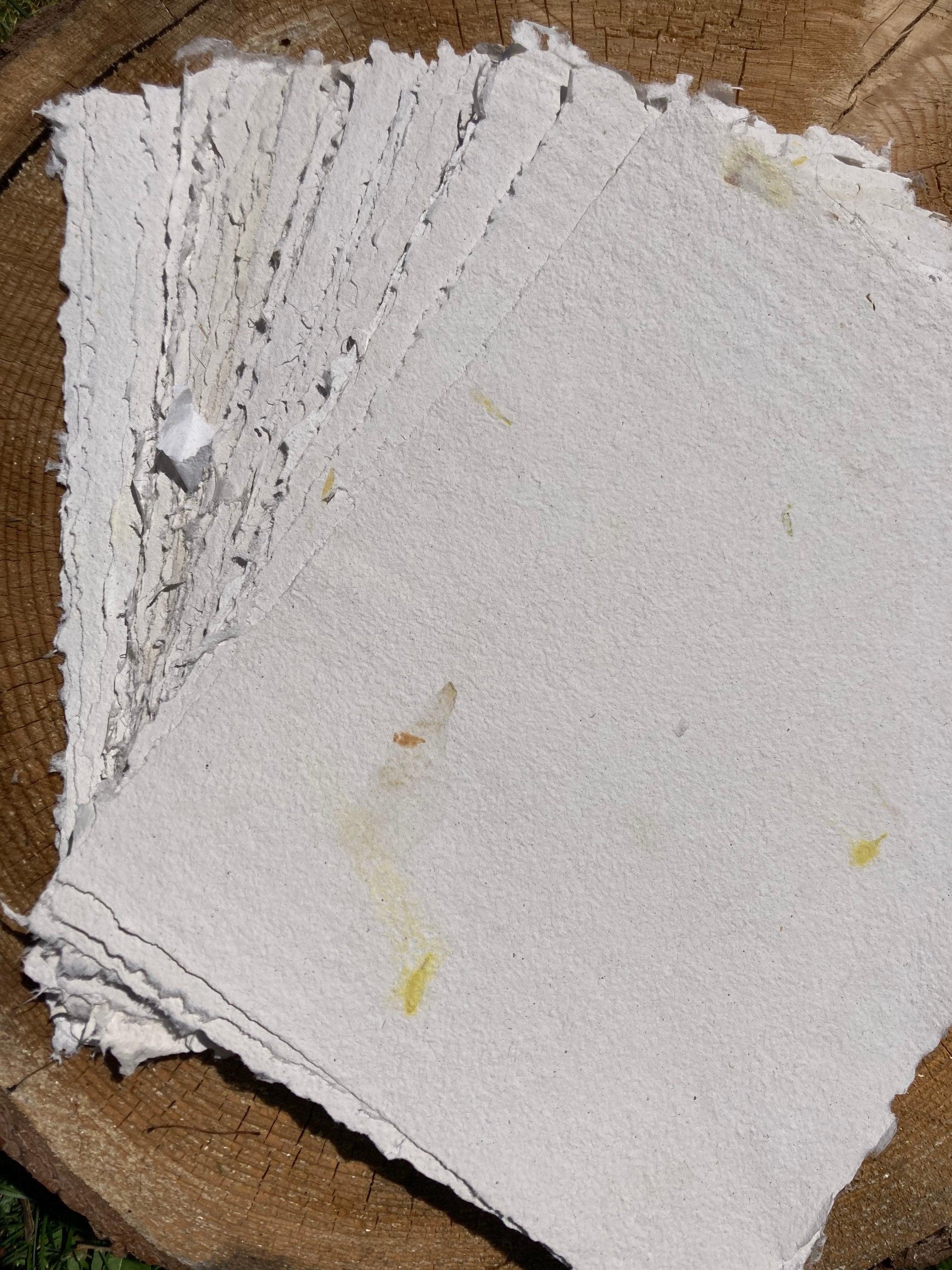 These sheets are much thinner than my usual watercolor paper, but are extra strong because they are made primarily with recycled cotton fabric. They are a creamy beige color with occasional flower petal inclusions.
