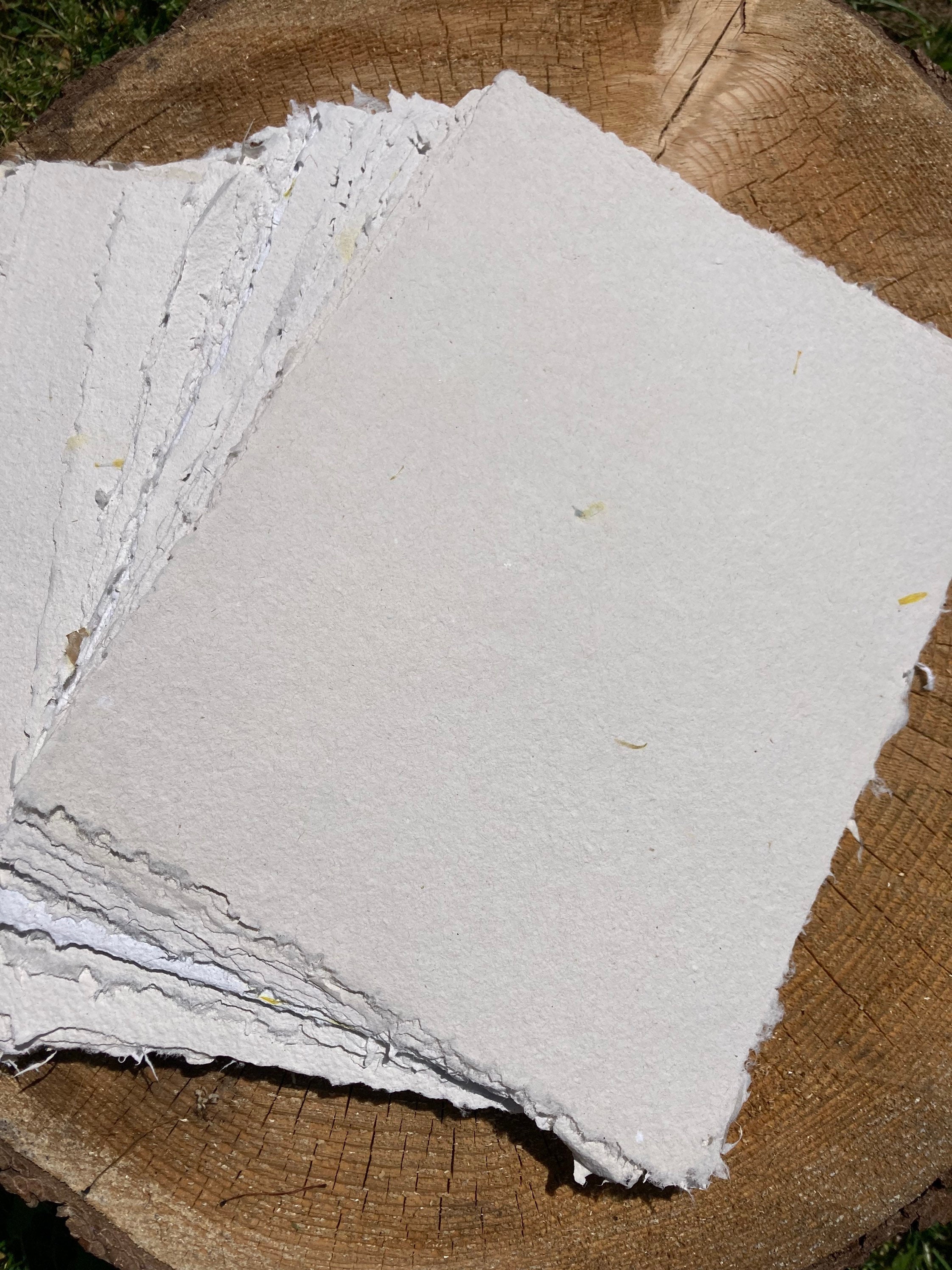 This listing is for one 8.5 x 11 inch sheet of vegan, recycled handmade paper, average 145gsm, specially formulated to handle wet media such as watercolors, marbling, printmaking, and calligraphy. It also work well with letterpress printing and embossing. To order more than one sheet, just select multiple quantities from the drop down menu.