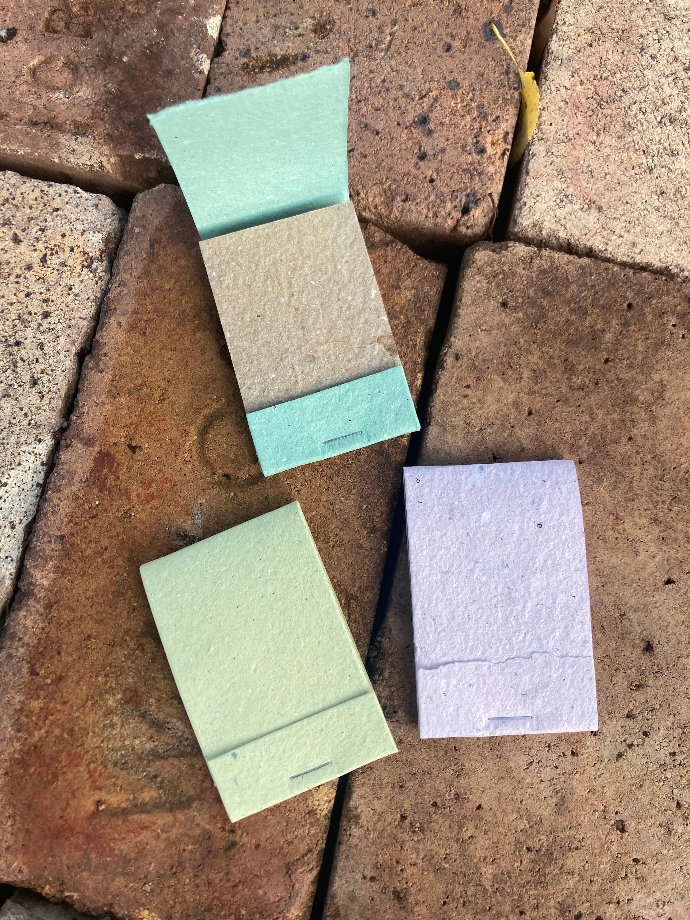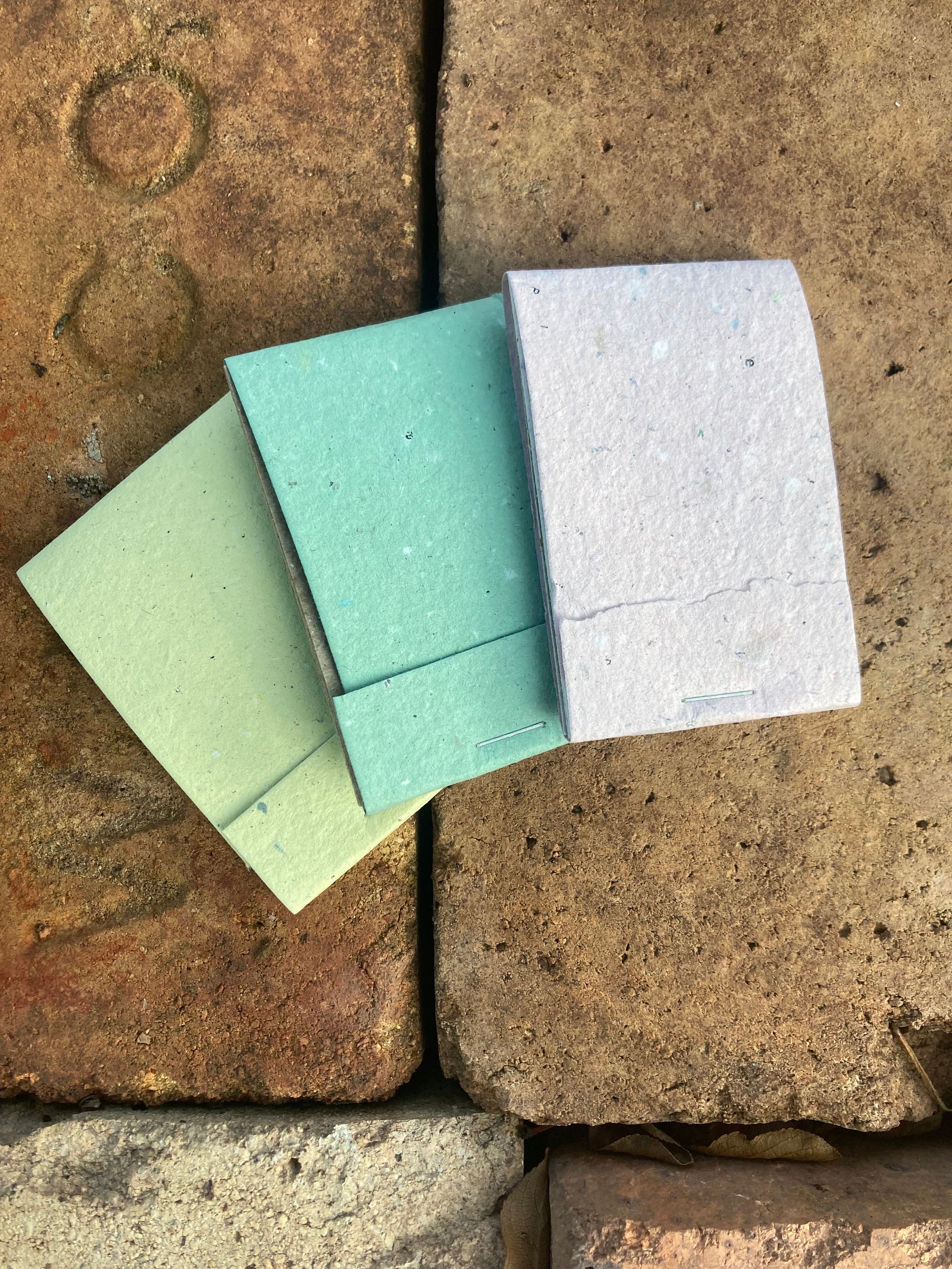 This listing is for a set of three 2x3 inch matchbook notebooks with colorful covers and an assortment of page colors (see photos)