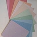 This listing is for a package of 10 sheets of handmade paper in your choice of size, but I won't tell you what kinds or colors. You might get paper with inclusions like flower petals, colored threads, glitter, or confetti flecks. You'll receive a mixed pack of colored and neutral papers, some with and some without inclusions. Often these are sheets of colors or styles that I had one or two extra left over from a batch--not enough for a full set, but great for a variety pack. You will not receive more than 2 sheets of the same color per pack of 10 sheets, so you will end up with at least 5 different colors of paper per pack of 10 sheets