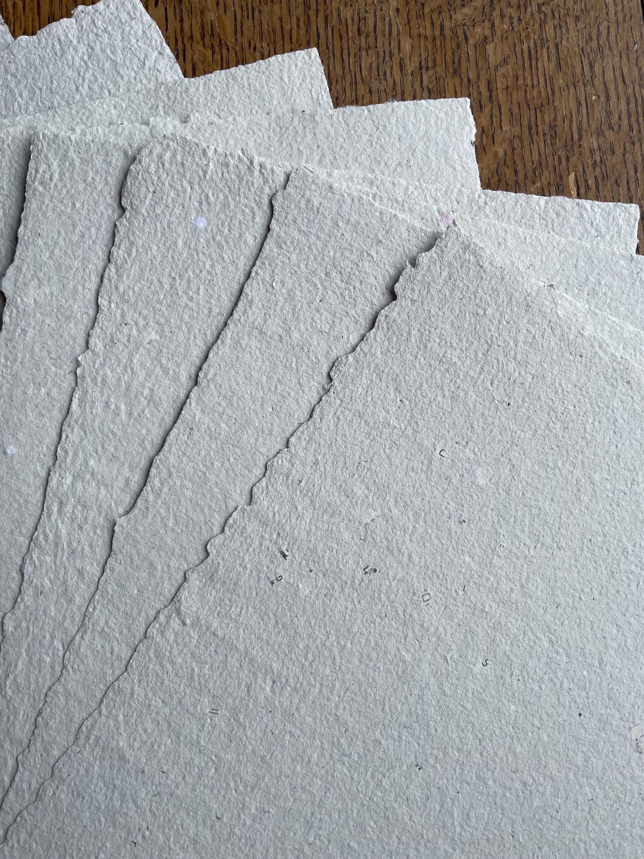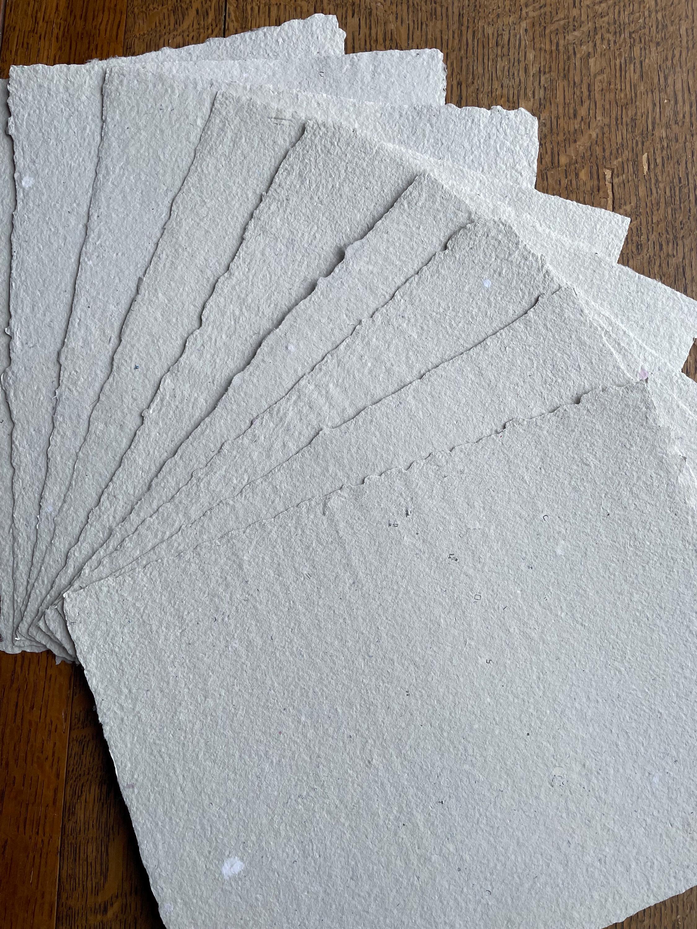 This listing is for one 8.5 x 11 inch sheet of vegan, recycled handmade paper, average 145gsm, specially formulated to handle wet media such as watercolors, marbling, printmaking, and calligraphy. It also works well with letterpress printing and embossing. To order more than one sheet, just select multiple quantities from the drop down menu.