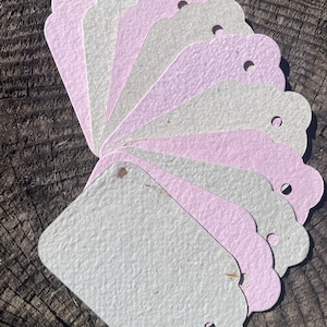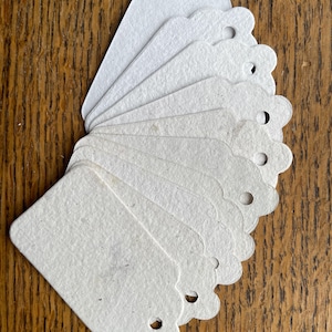 This listing is for 10 tags made from 100% recycled office, notebook, and printer papers that I have collected and recycled myself in my Ashland, Wisconsin studio. You will receive the exact assortment shown in the photos.