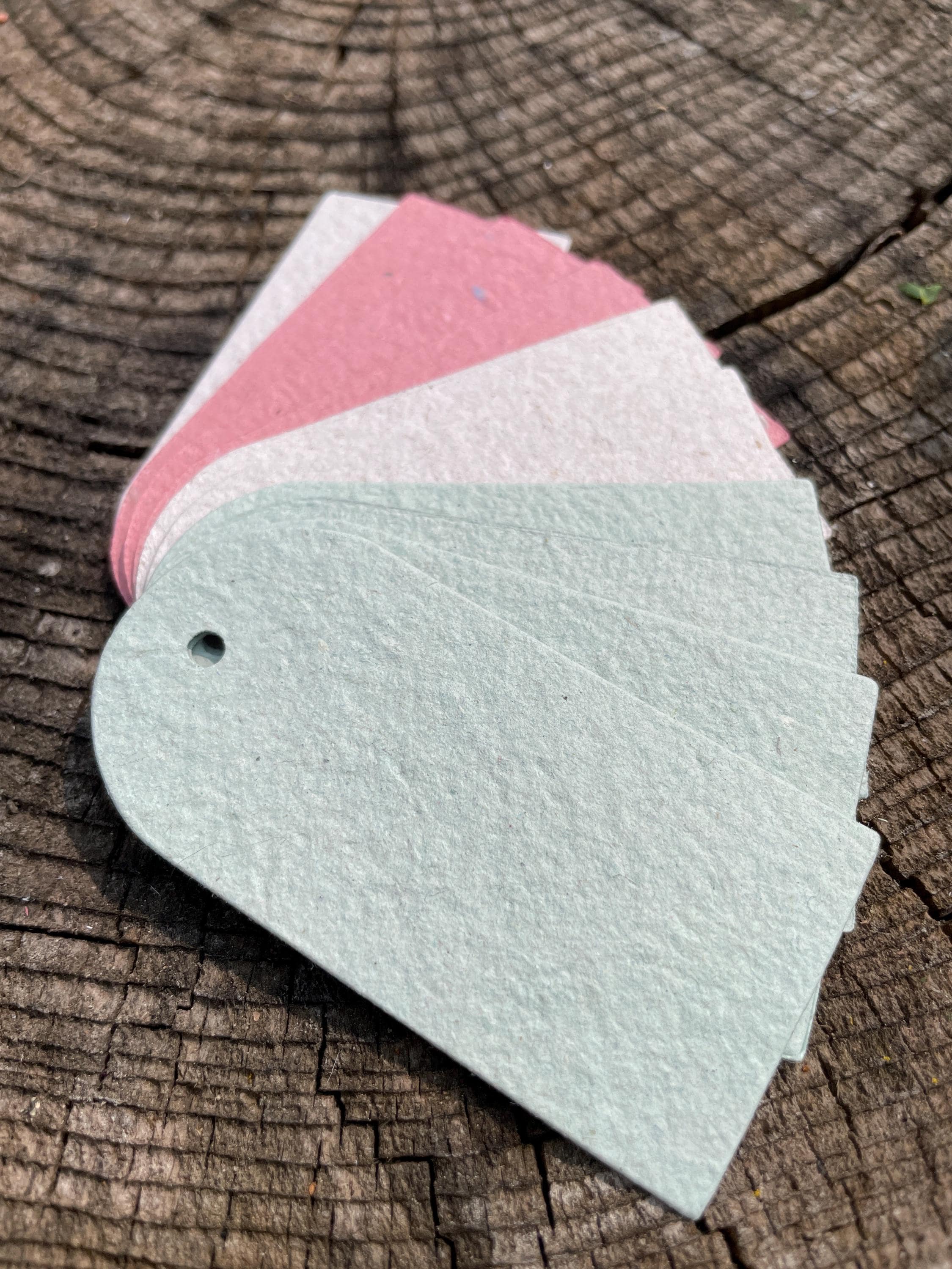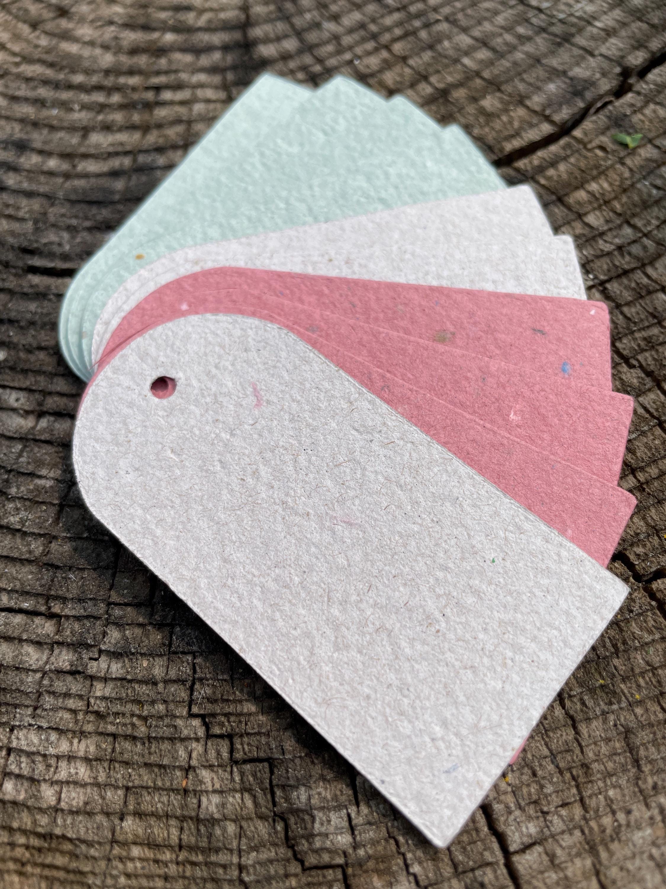 This listing is for 10 tags cut from assorted neutral handmade recycled paper. You will receive the exact assortment shown.