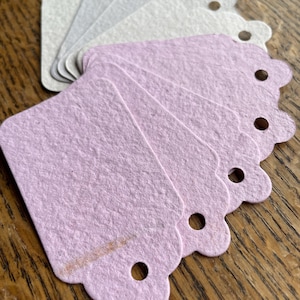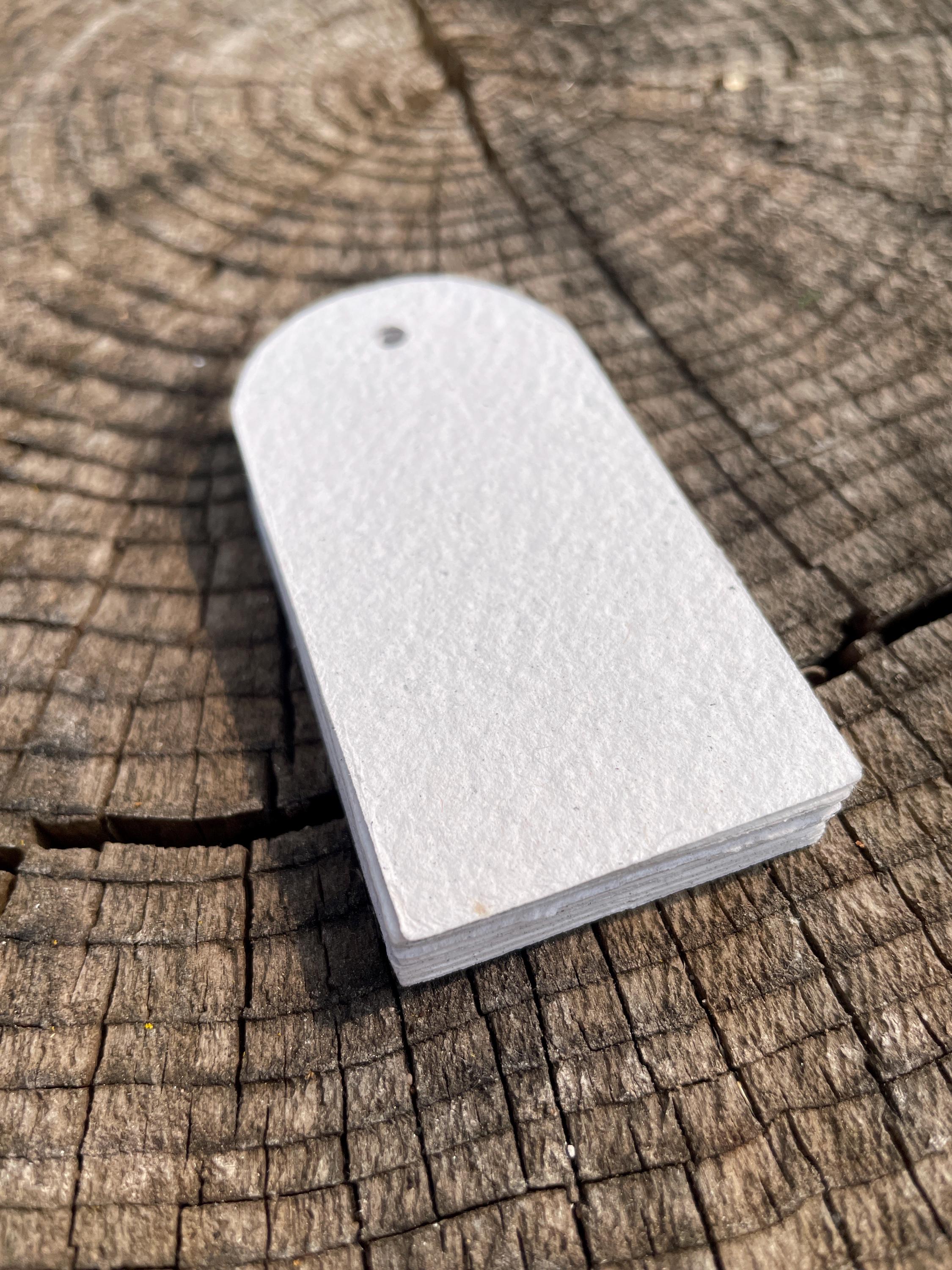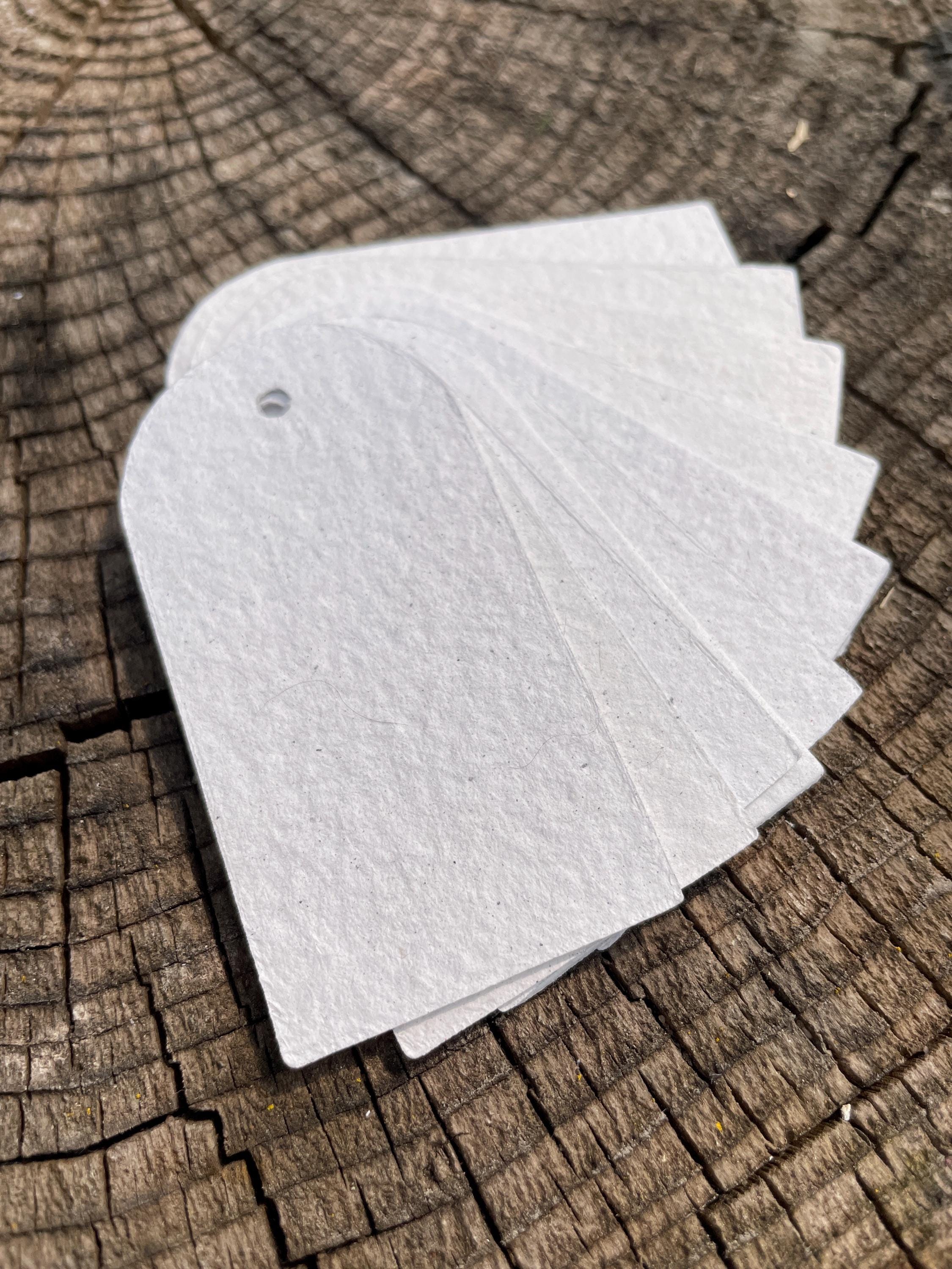 This listing is for 10 tags cut from white handmade recycled paper. You will receive the exact assortment shown.