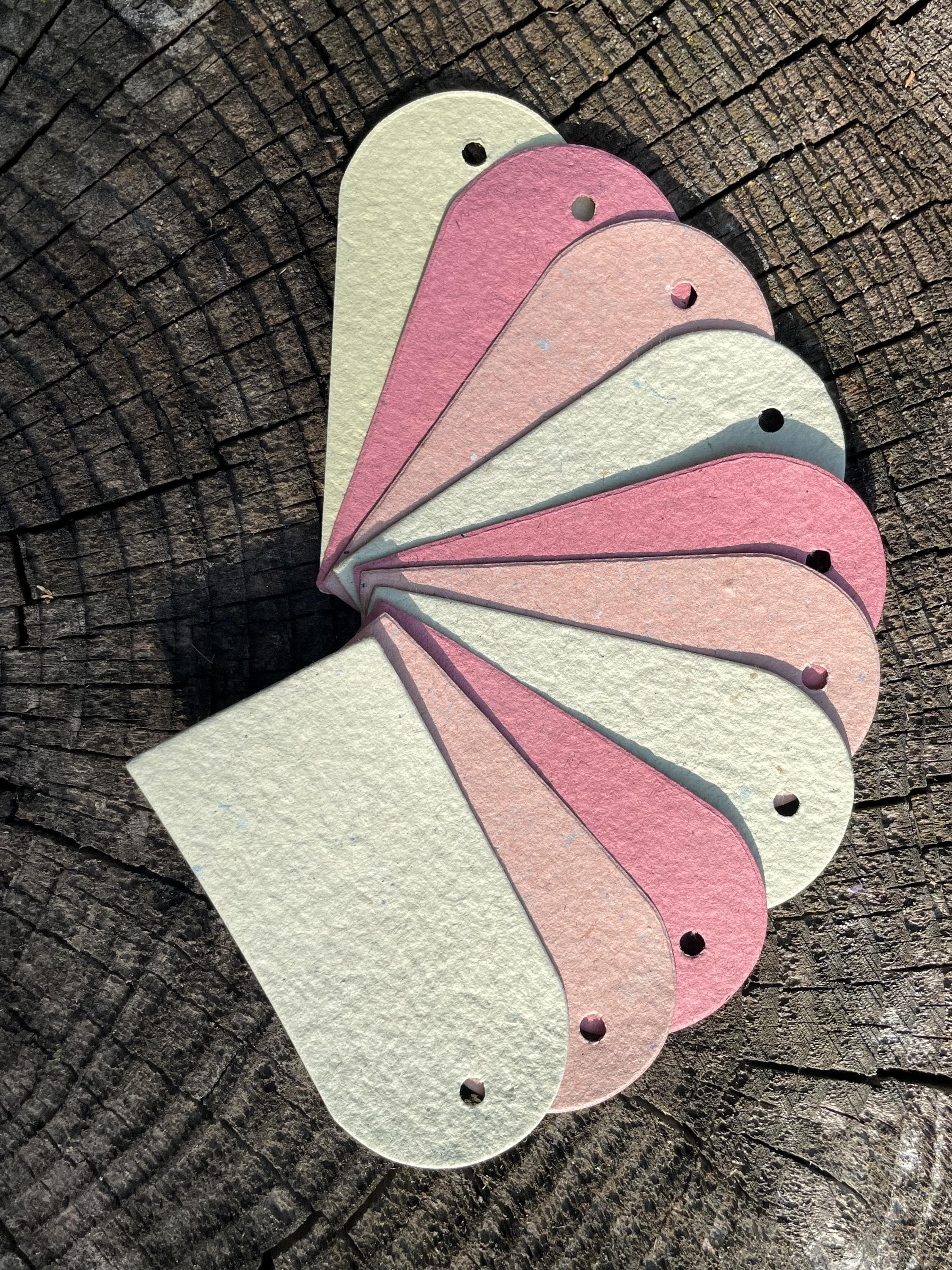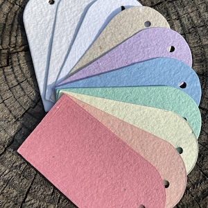 This listing is for 10 tags cut from red, yellow, and orange handmade recycled paper. You will receive the exact assortment shown.