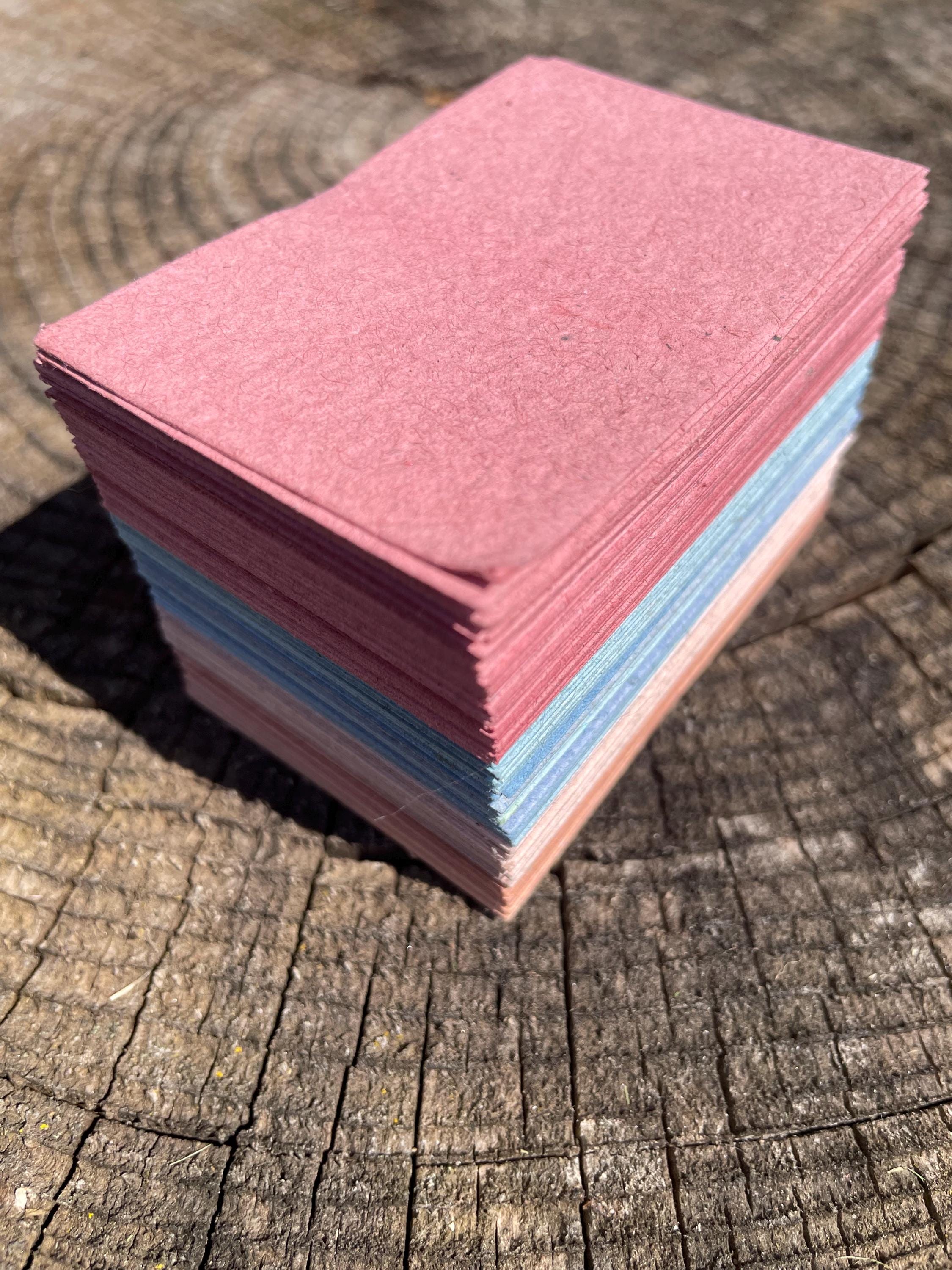 100 sheets of cut 2x3 inch paper, handmade paper, business cards, calling cards, recycled paper