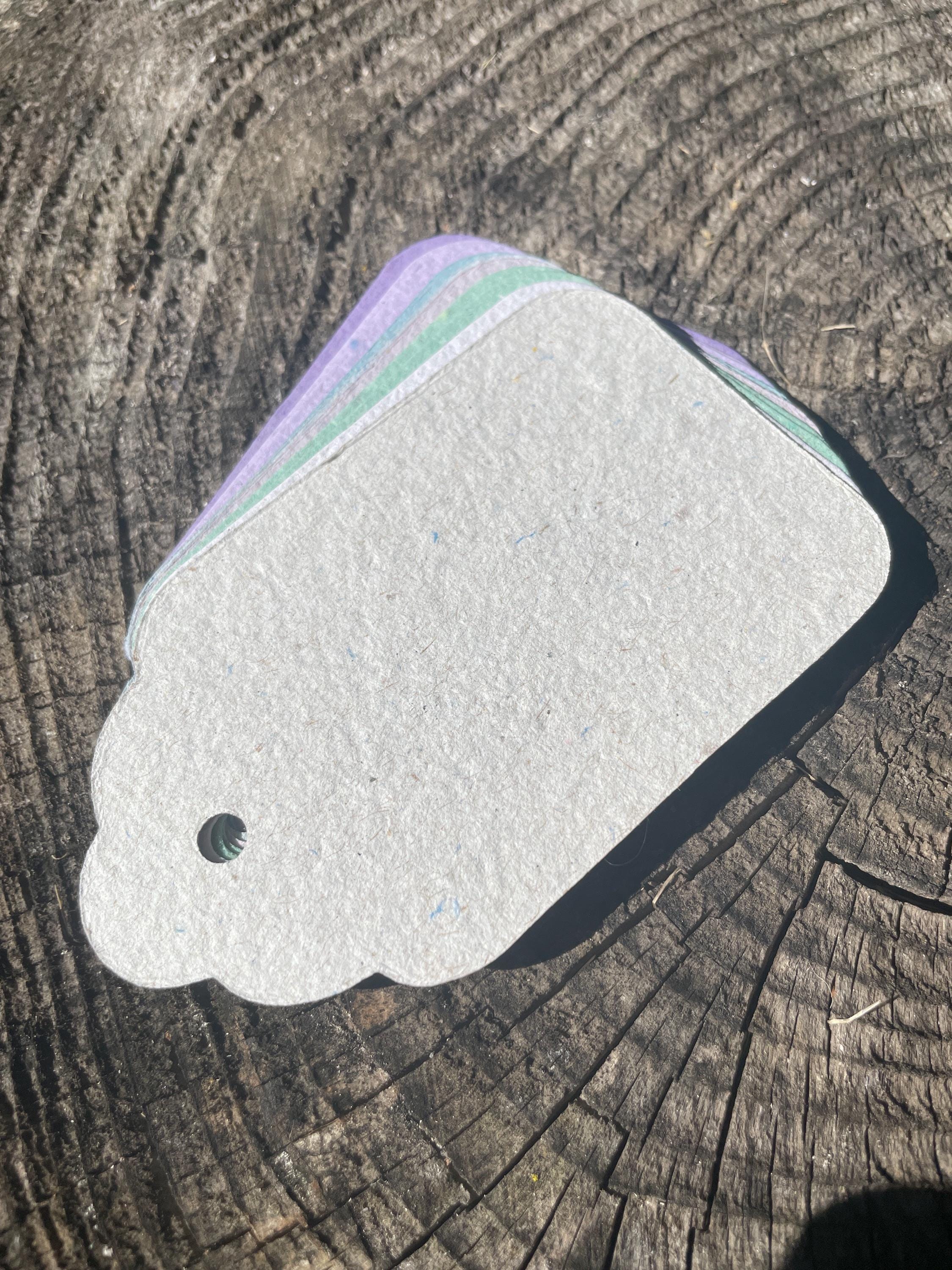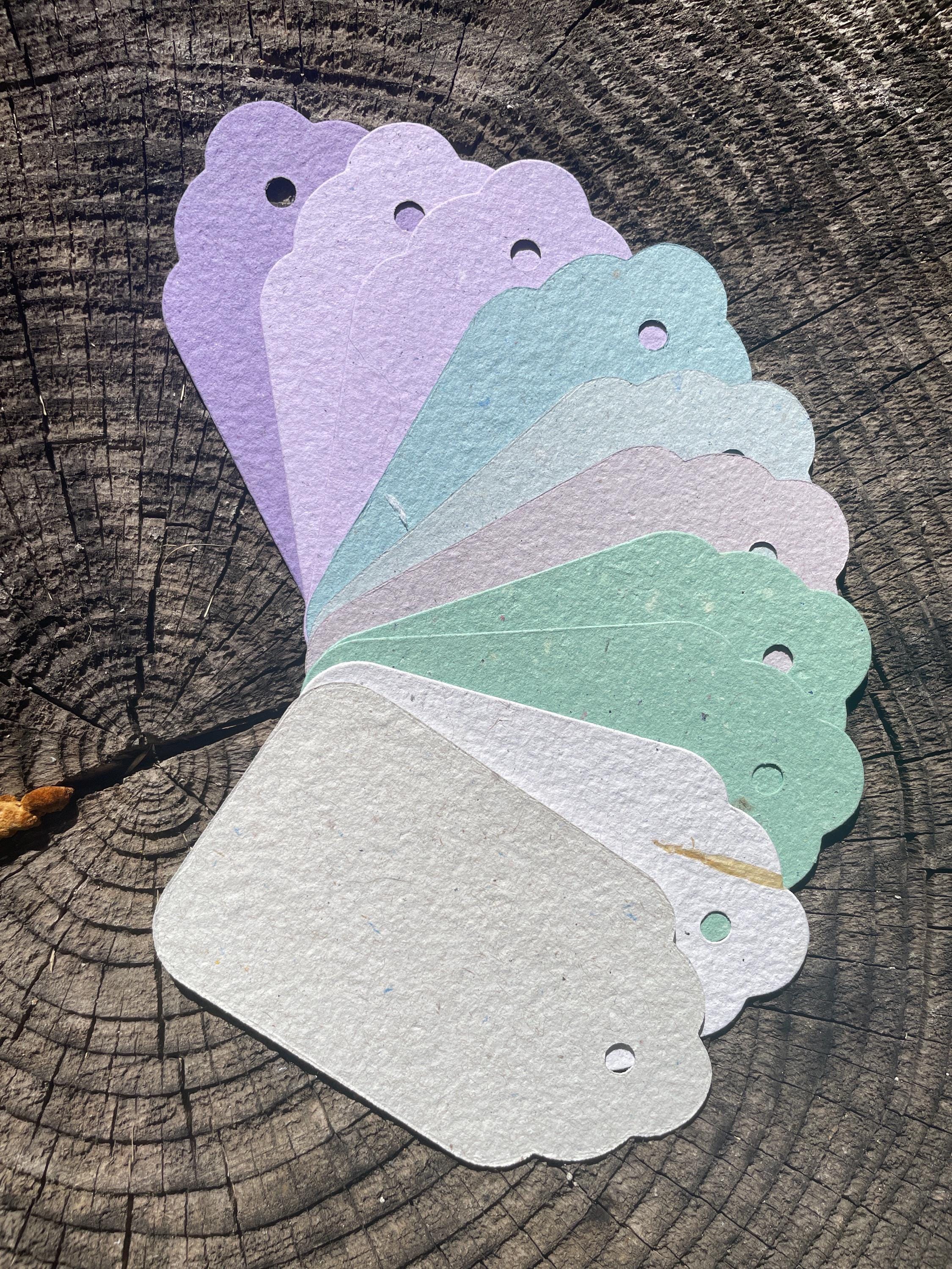 10 blue green purple white gift tags, eco friendly packaging, price tags, recycled handmade paper