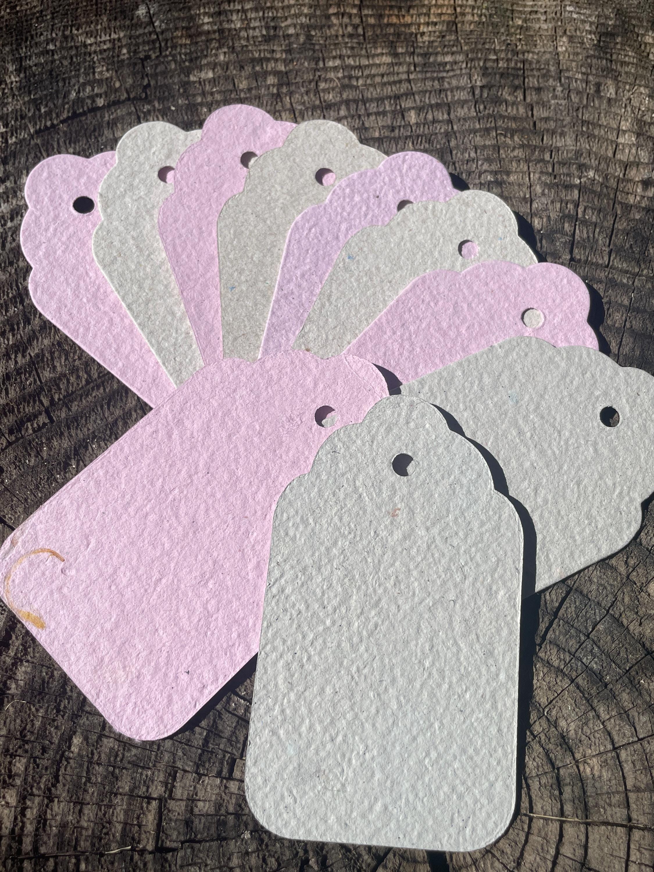 This listing is for 10 tags cut from assorted handmade recycled paper. You will receive the exact assortment shown.