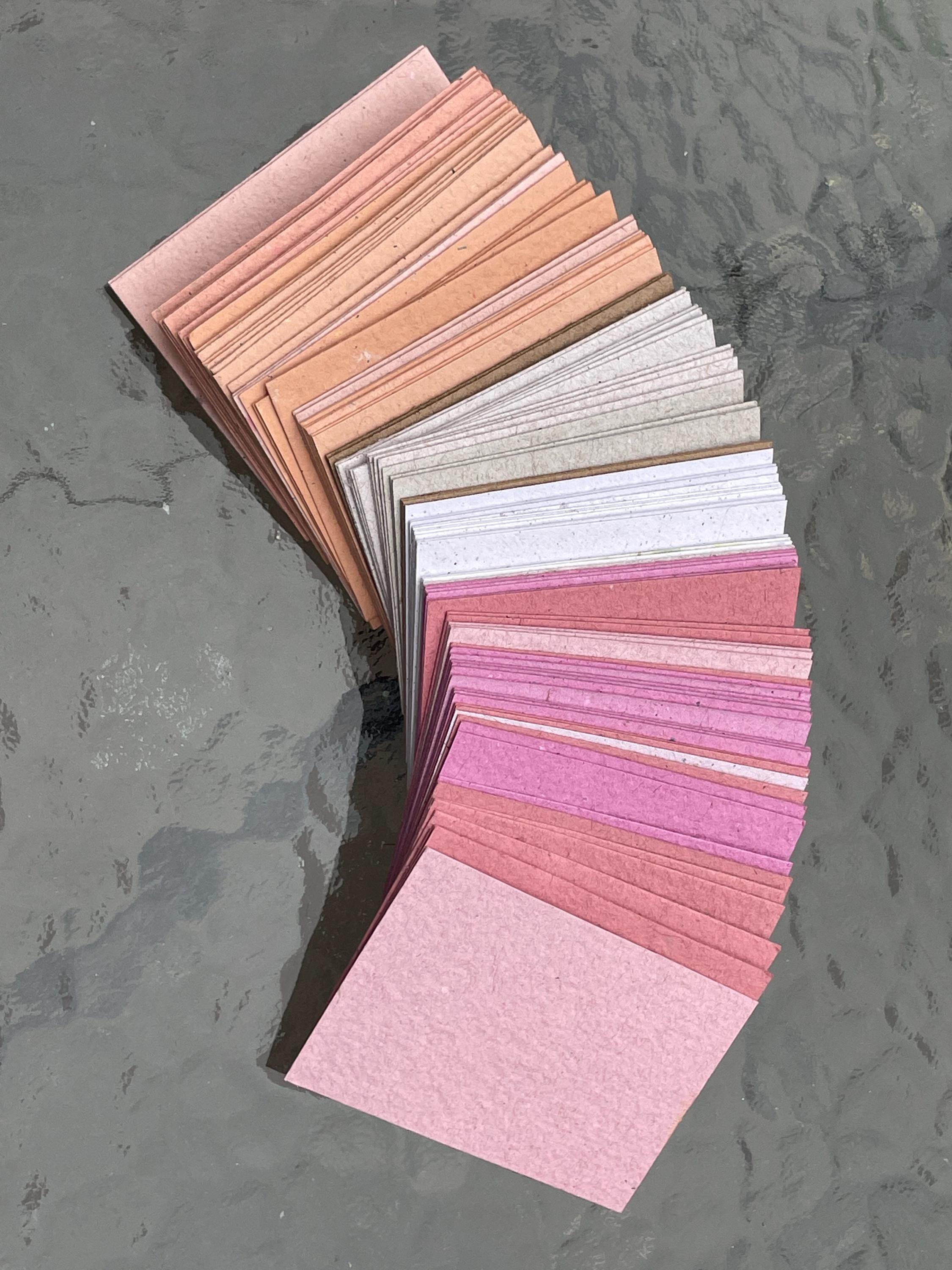 This listing is for 100 sheets of 2x3 inch cut paper in a curated assortment of pinks, oranges, and neutrals.