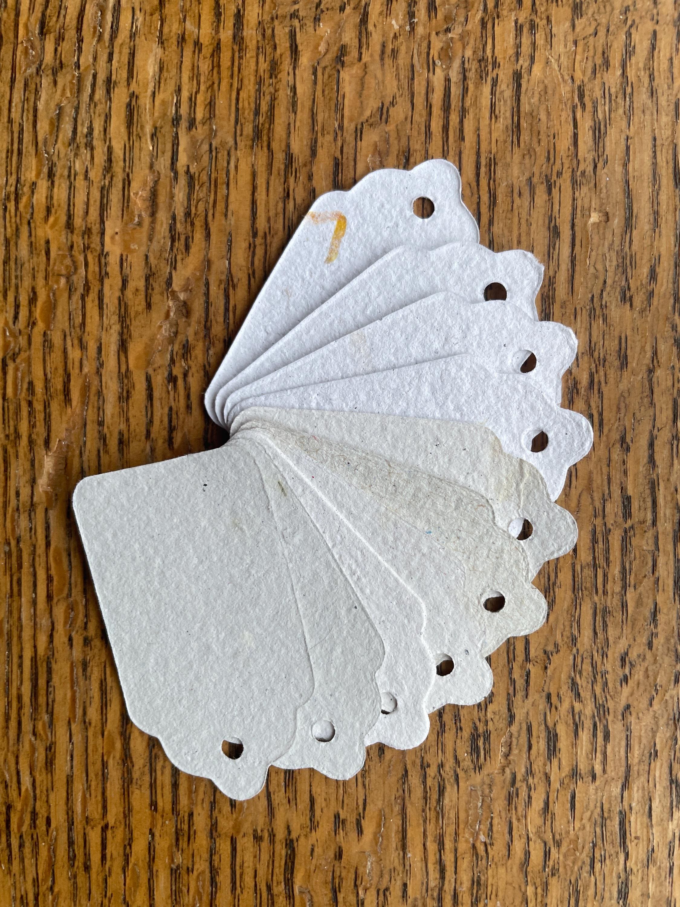 This listing is for 10 tags made from 100% recycled office, notebook, and printer papers that I have collected and recycled myself in my Ashland, Wisconsin studio. You will receive the exact assortment shown in the photos.