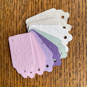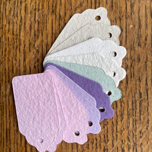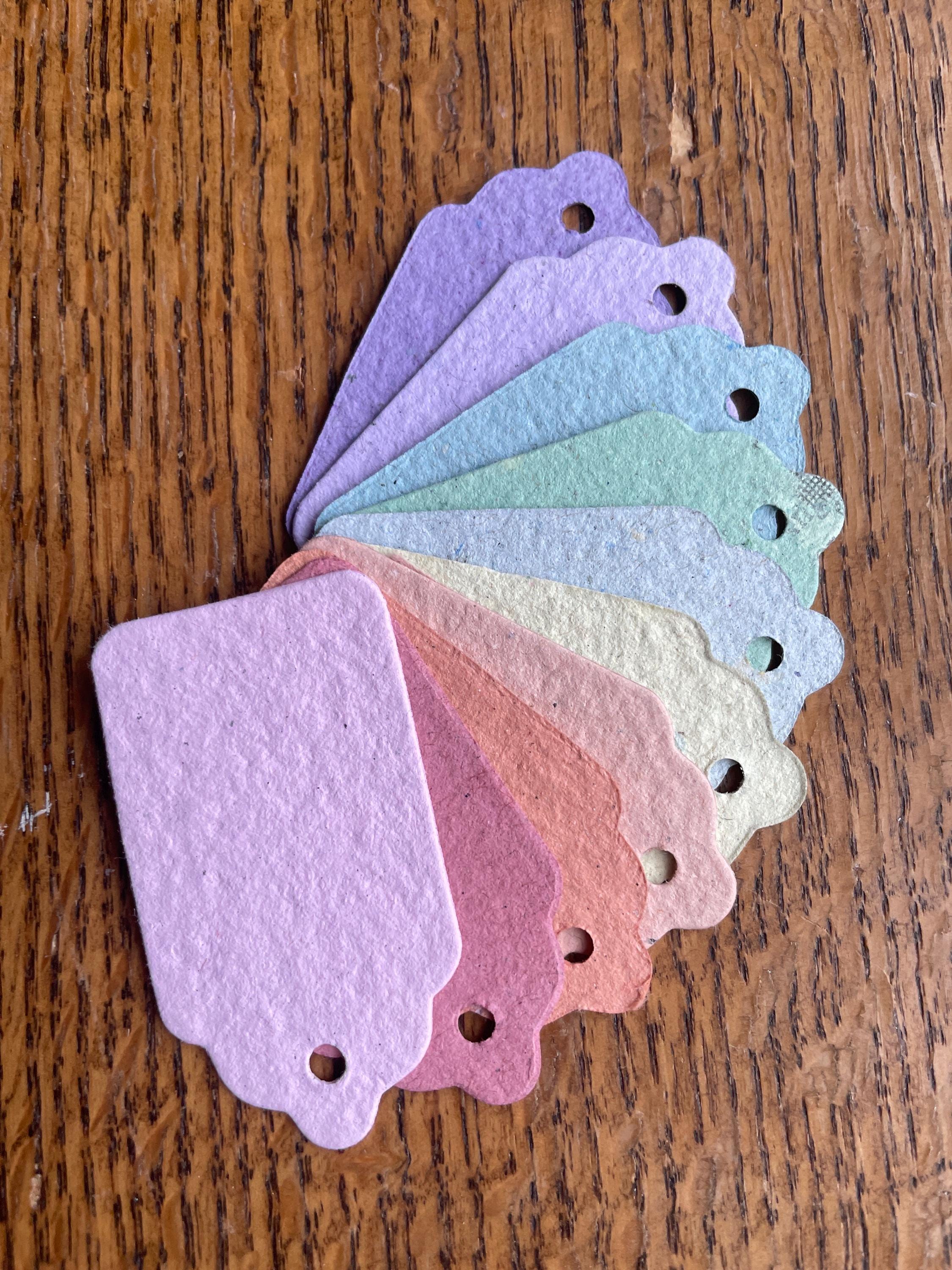 This listing is for 10 tags made from 100% recycled office, notebook, and printer papers that I have collected and recycled myself in my Ashland, Wisconsin studio. You will receive the exact assortment shown in the photos.