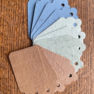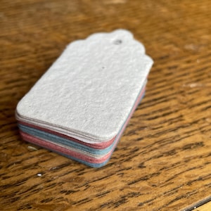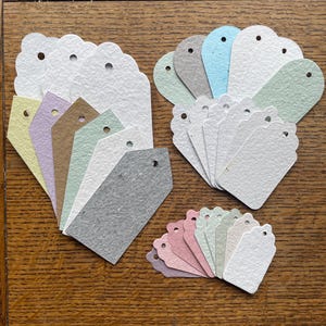 This listing is for 10 tags made from 100% recycled office, notebook, and printer papers that I have collected and recycled myself in my Ashland, Wisconsin studio. You will receive the exact assortment shown in the photos.