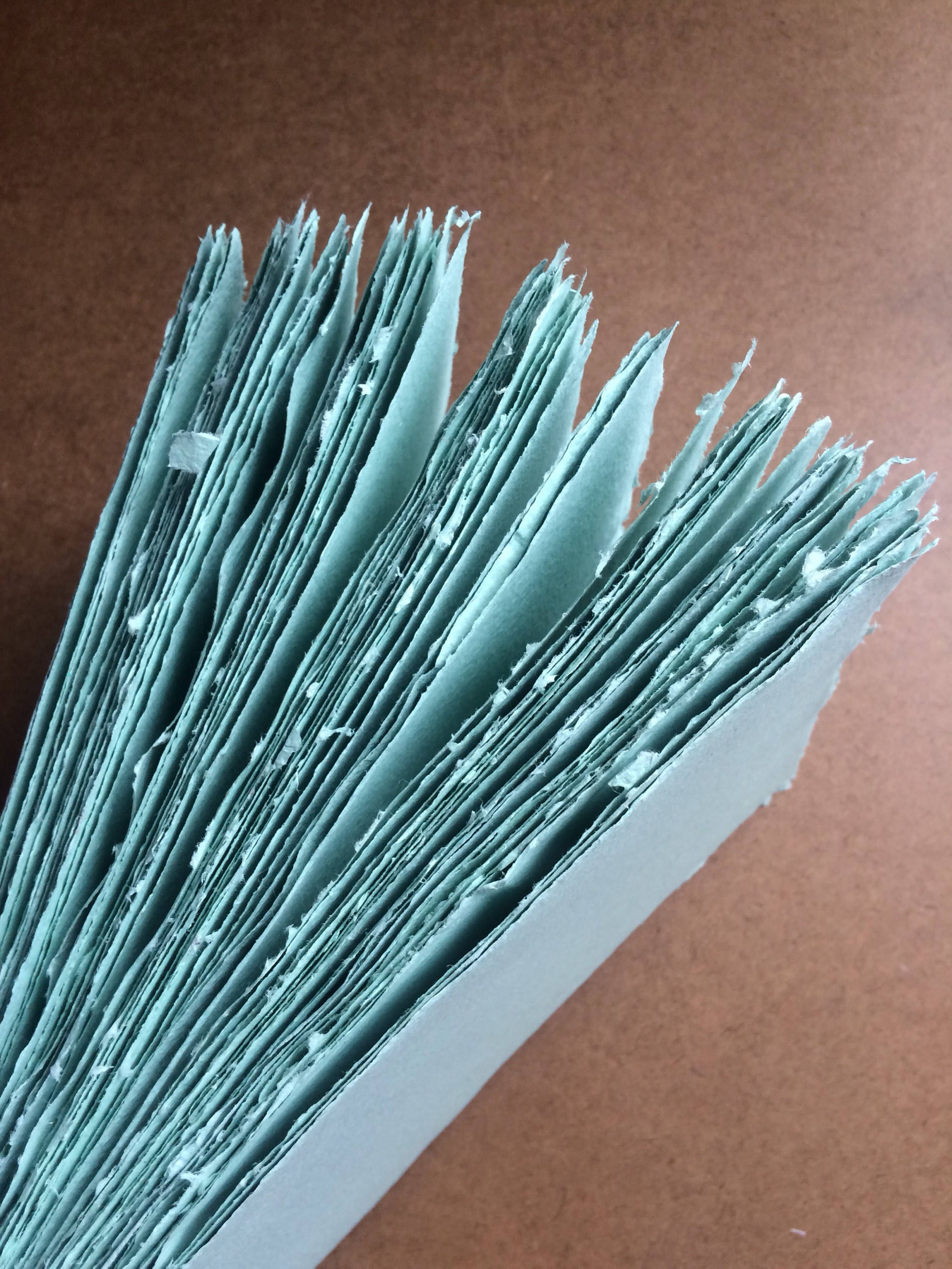 Full 8.5x11 inch sheets will have deckled edges shown in the photo. Smaller sizes will have clean cut edges. Because this is a limited batch, I can’t make new sheets in smaller sizes, so all sizes smaller than 8.5x11 inches will have cut edges.