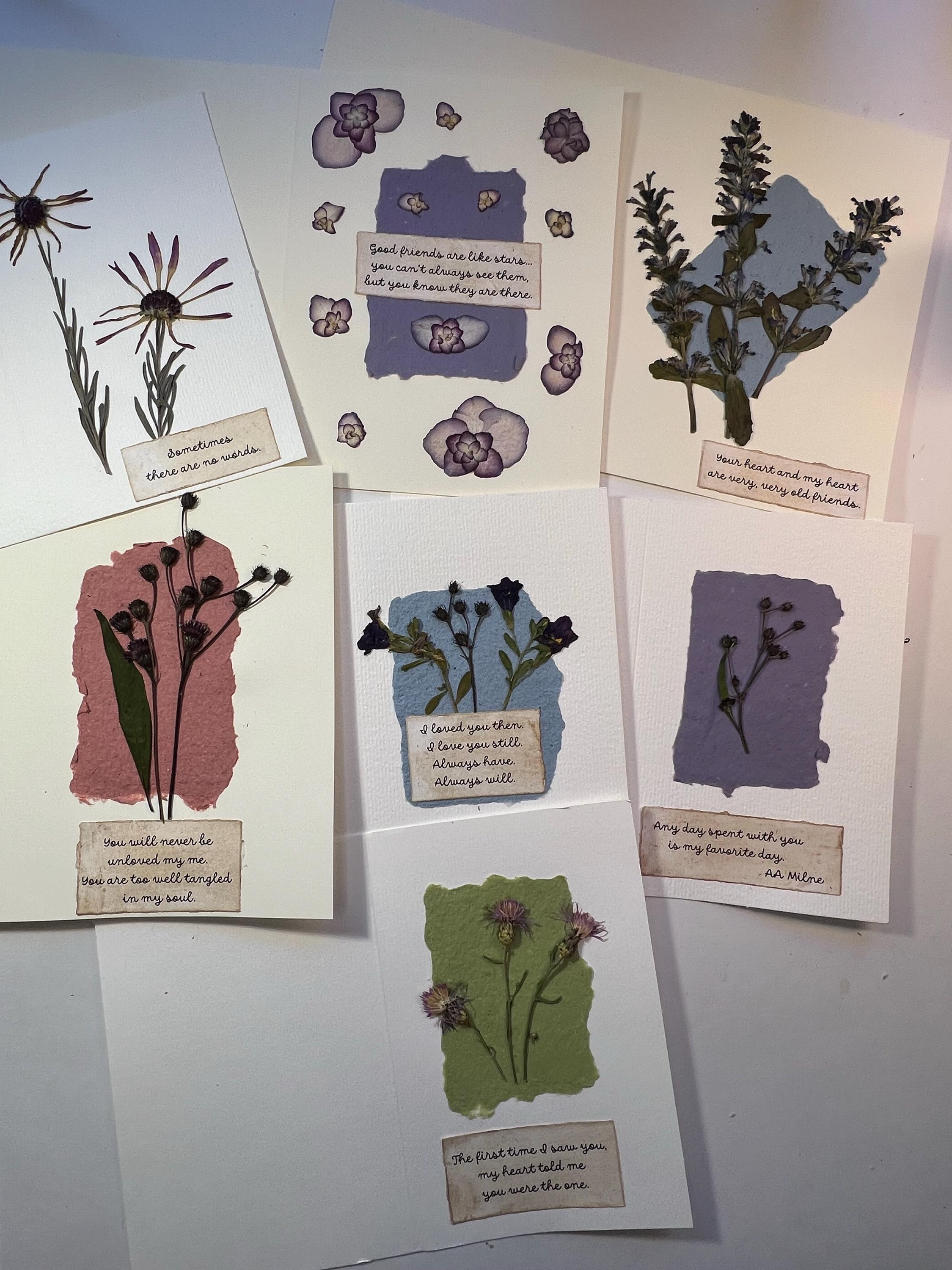 This listing is for a package of 10 sheets of handmade paper in your choice of size, but I won't tell you what kinds or colors. You might get paper with inclusions like flower petals, colored threads, glitter, or confetti flecks. You'll receive a mixed pack of colored and neutral papers, some with and some without inclusions. Often these are sheets of colors or styles that I had one or two extra left over from a batch--not enough for a full set, but great for a variety pack. You will not receive more than 2 sheets of the same color per pack of 10 sheets, so you will end up with at least 5 different colors of paper per pack of 10 sheets
