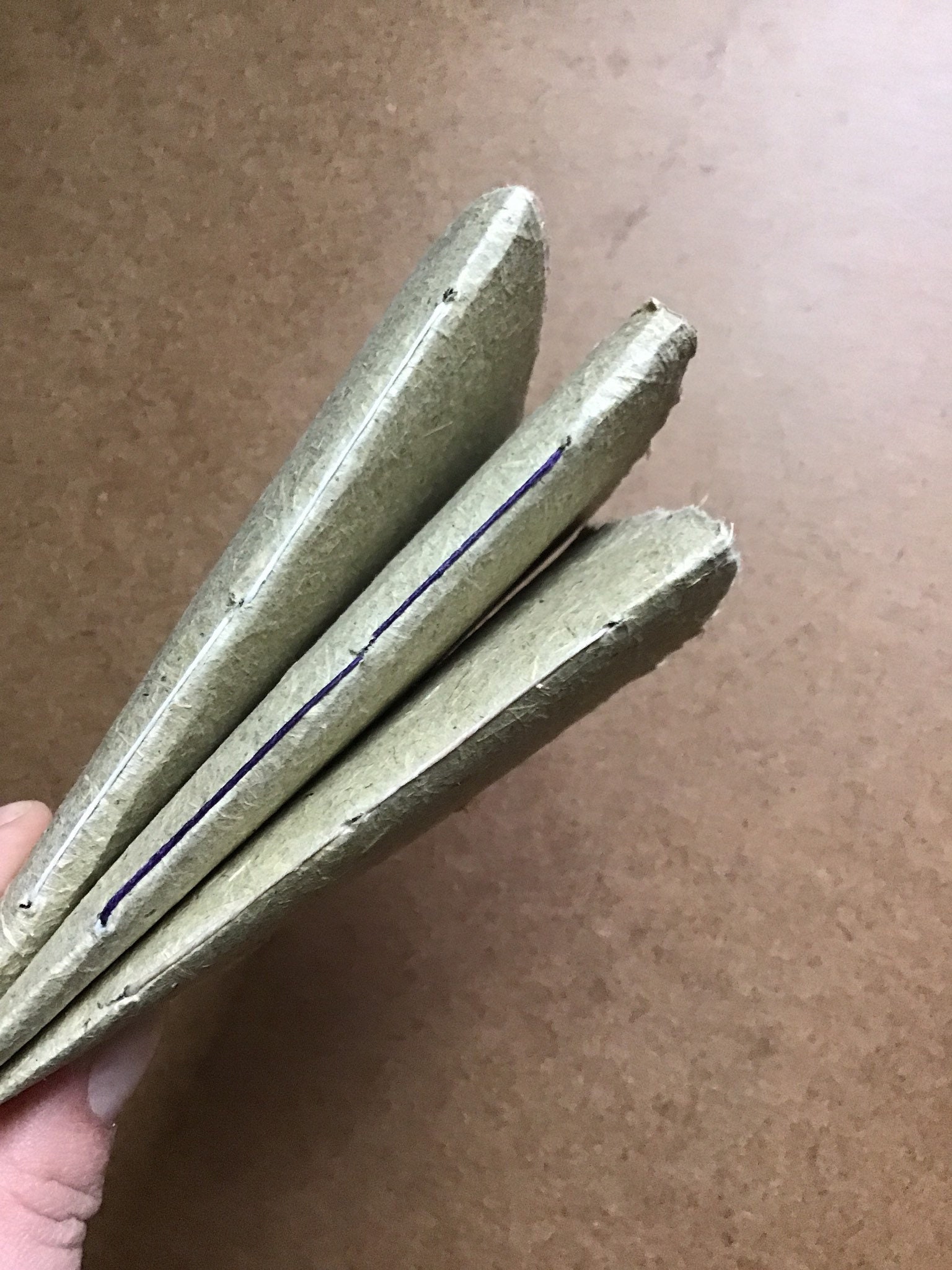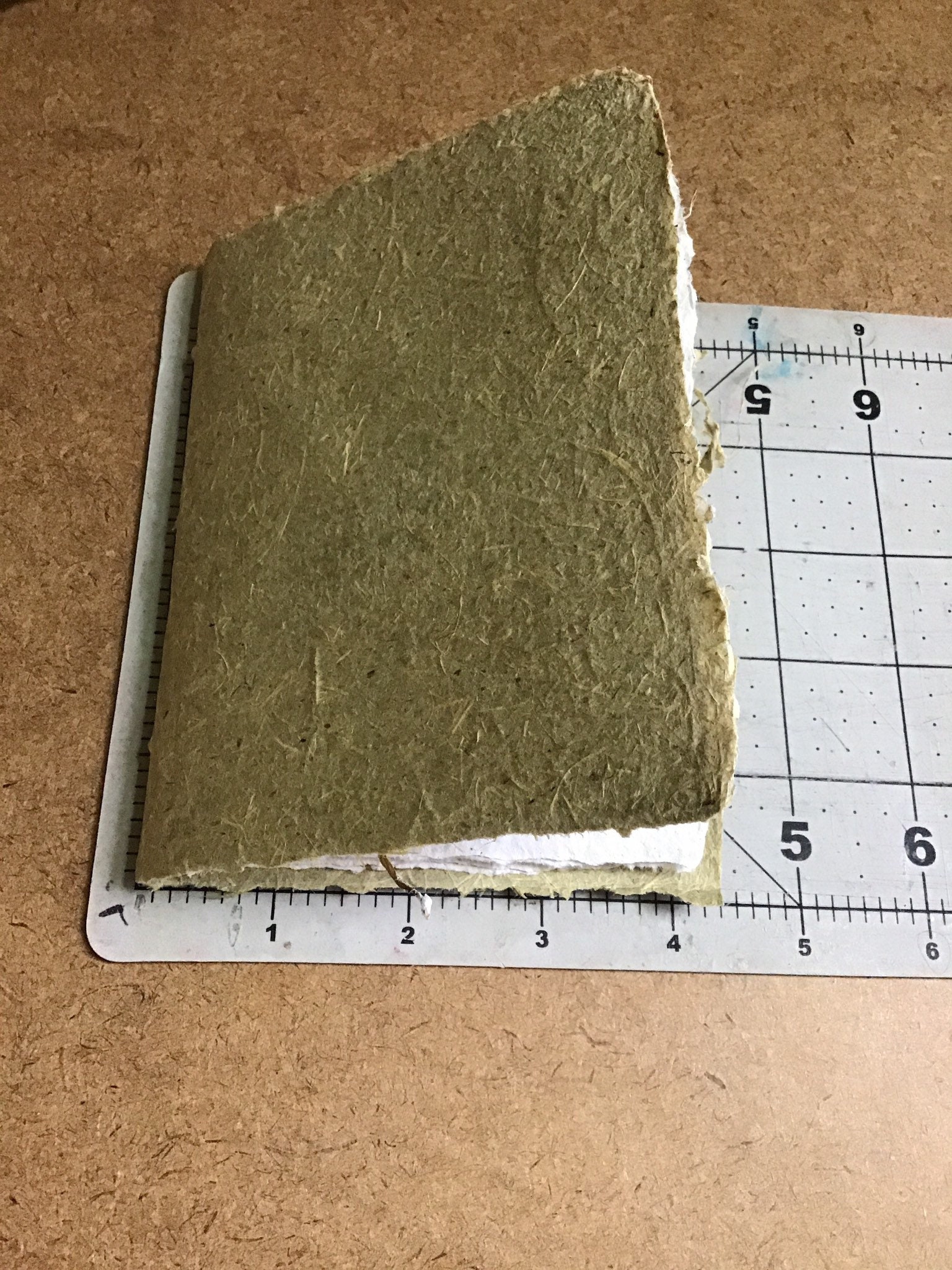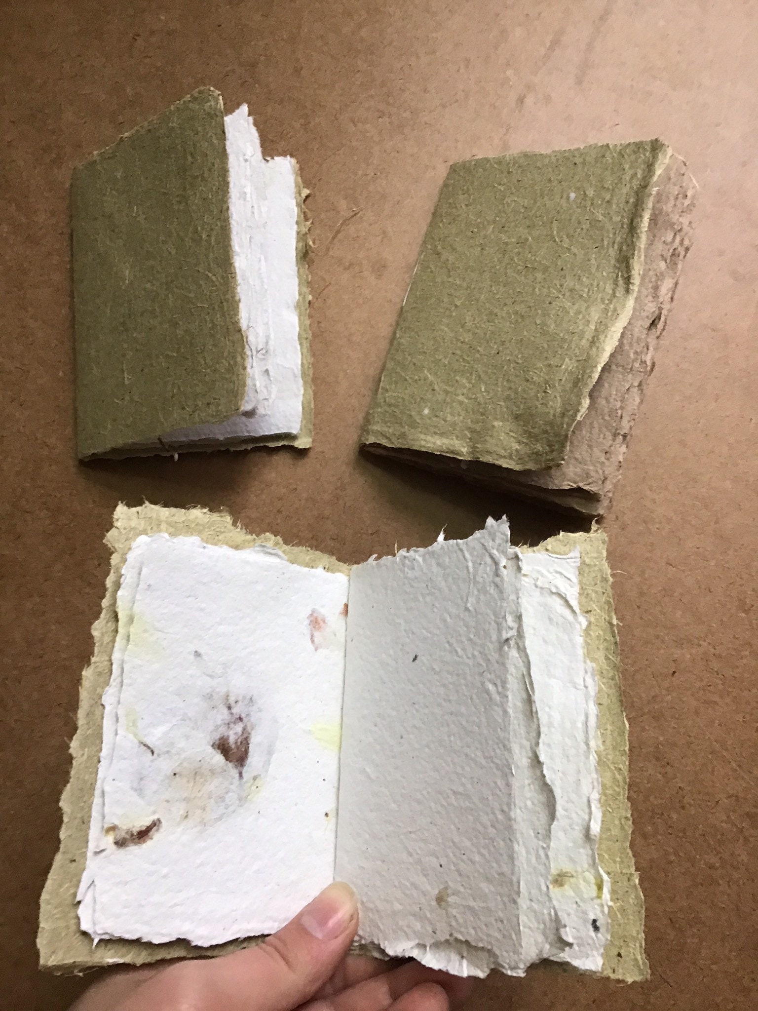 This listing is for a set of three 10 page (20 sides) notebooks measuring 4x5 inches made from 100% recycled handmade paper, made by me in Columbus, Ohio. The covers were made from assorted raw plant fibers, such as mixed grass fibers.