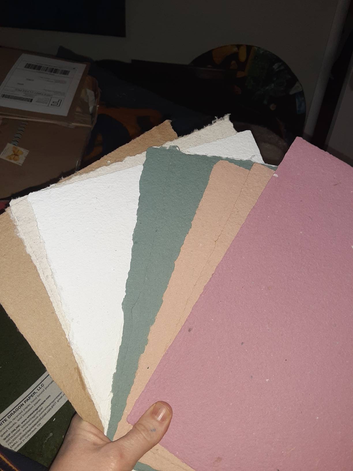 This listing is for 5 sheets of handmade paper. Photos show examples of some of the sheets your mix may be made from. You may not receive the exact mix shown, but it will be similar and from the same batch of paper.